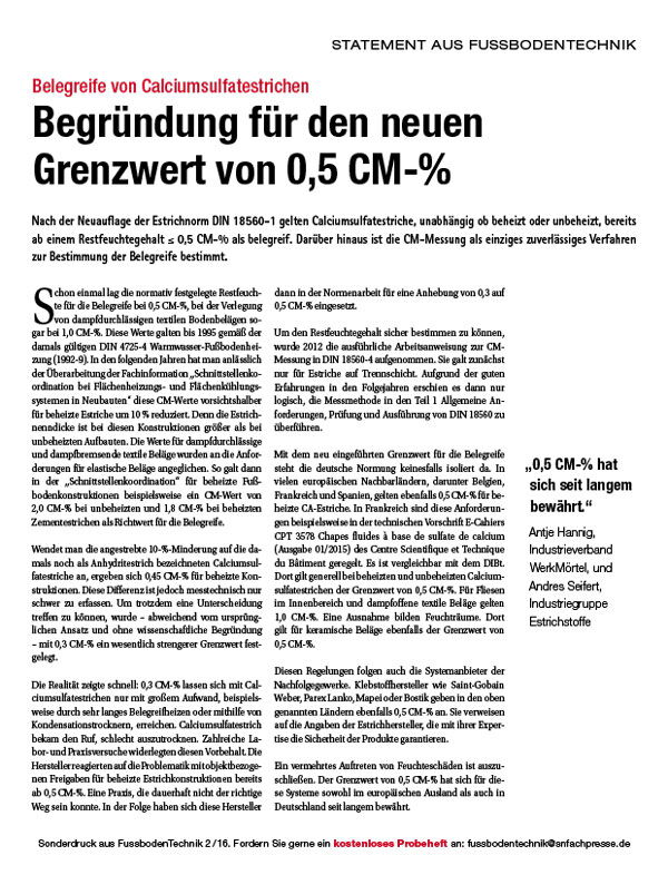 Prüfungen an Zement-Fließestrichen (2015/11)