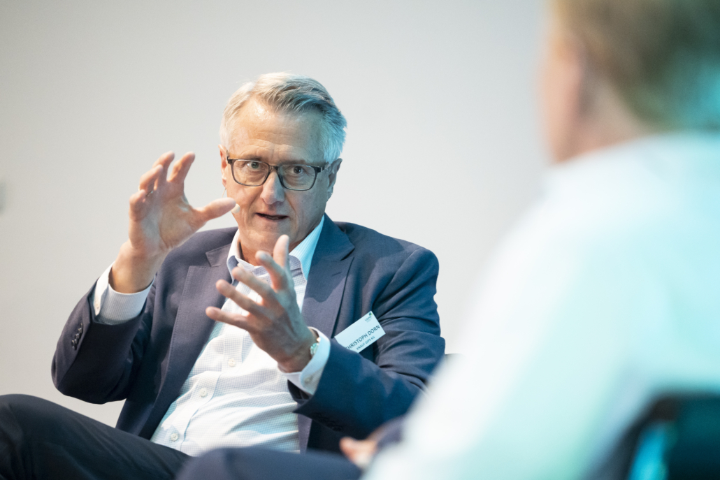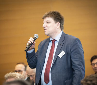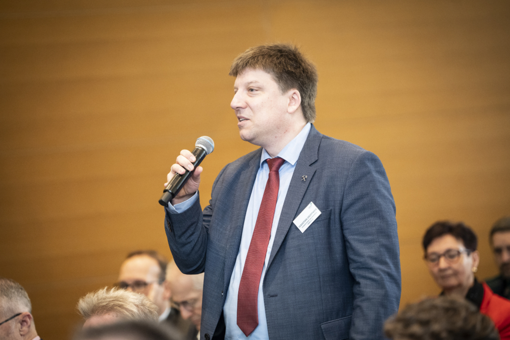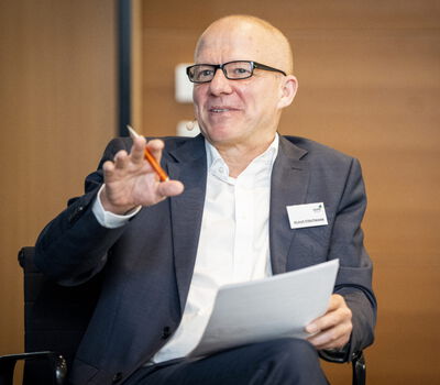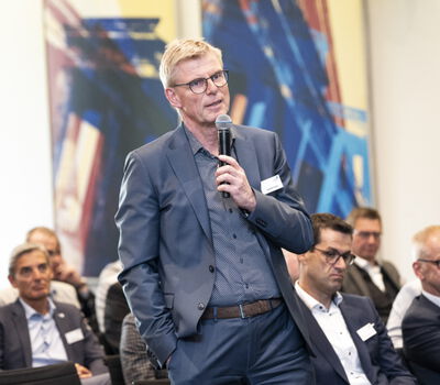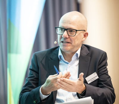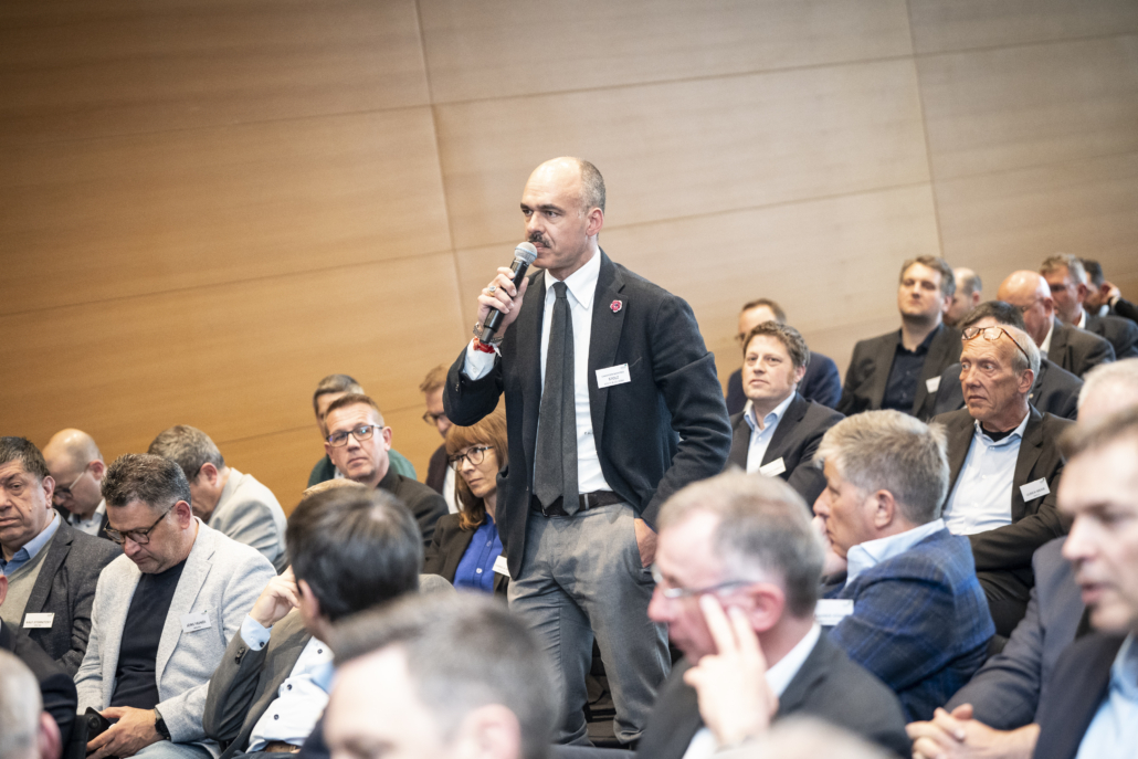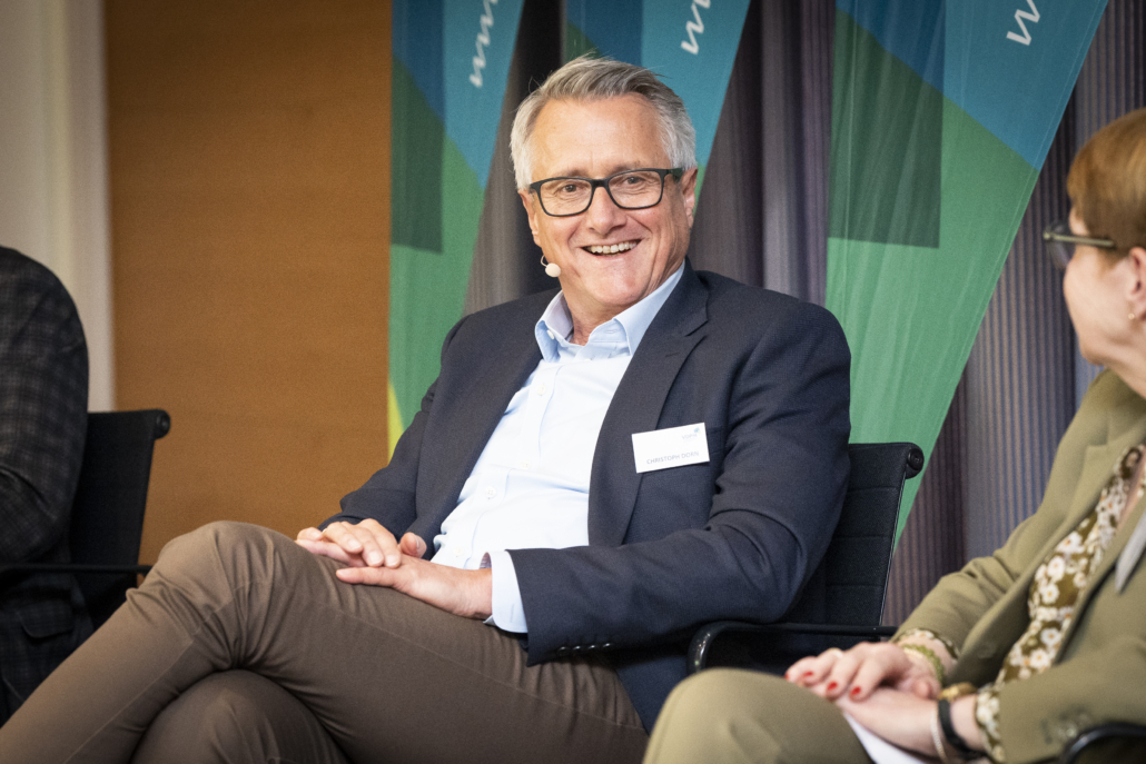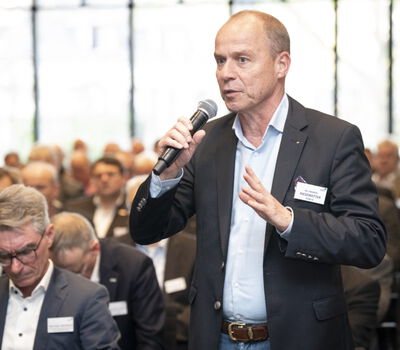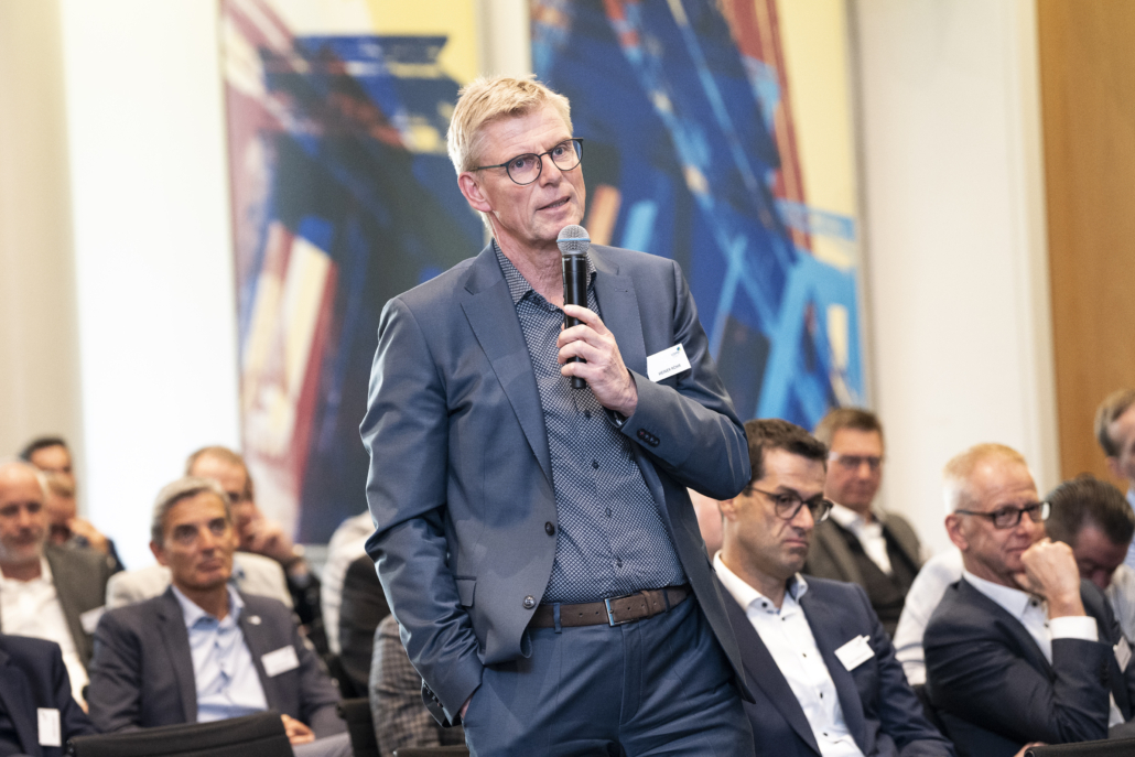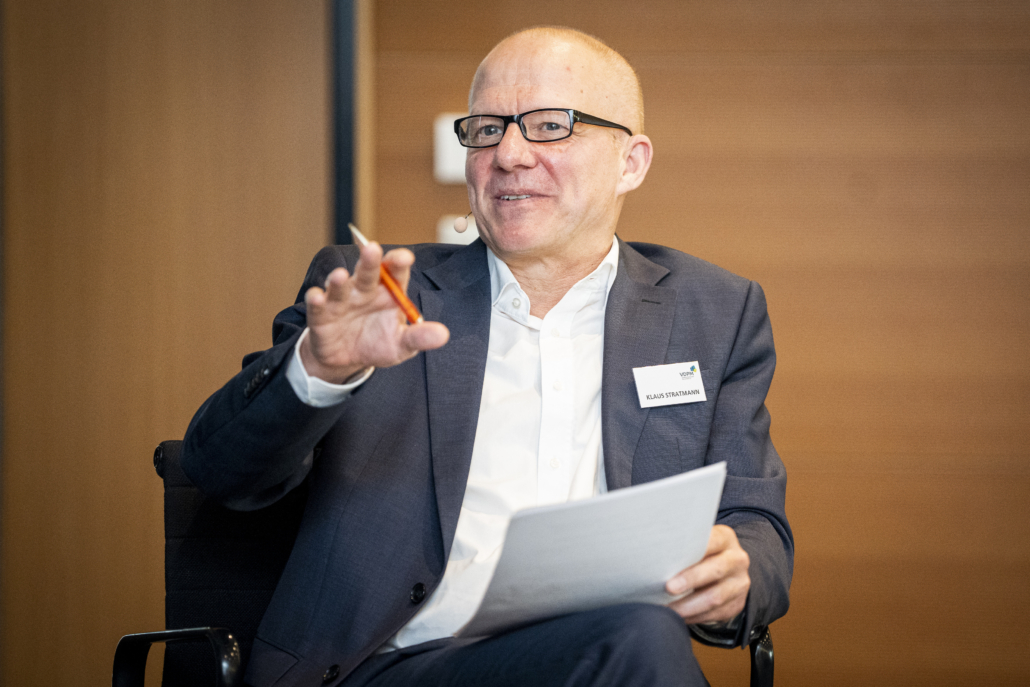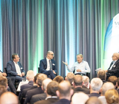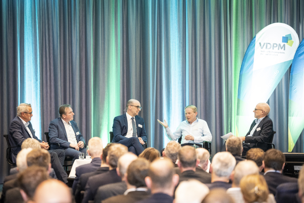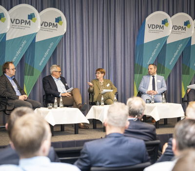 Den Auftakt bildete eine von Klaus Stratmann, Handelsblatt-Chefkorrespondent Klima und Energie, moderierte Podiumsdiskussion zum aktuellen Stand und den Perspektiven der energetischen Gebäudemodernisierung. VDPM-Hauptgeschäftsführer Lars Jope begrüßte dazu Stefan Bolln (Bundesvorsitzender Energieberatendenverband GIH), Christoph Dorn (Vorstandsvorsitzender VDPM), Katharina Metzger (Präsidentin Bundesverband Deutscher Baustoff-Fachhandel BDB) und Gerold Happ (Mitglied der Bundesgeschäftsführung Haus & Grund Deutschland).