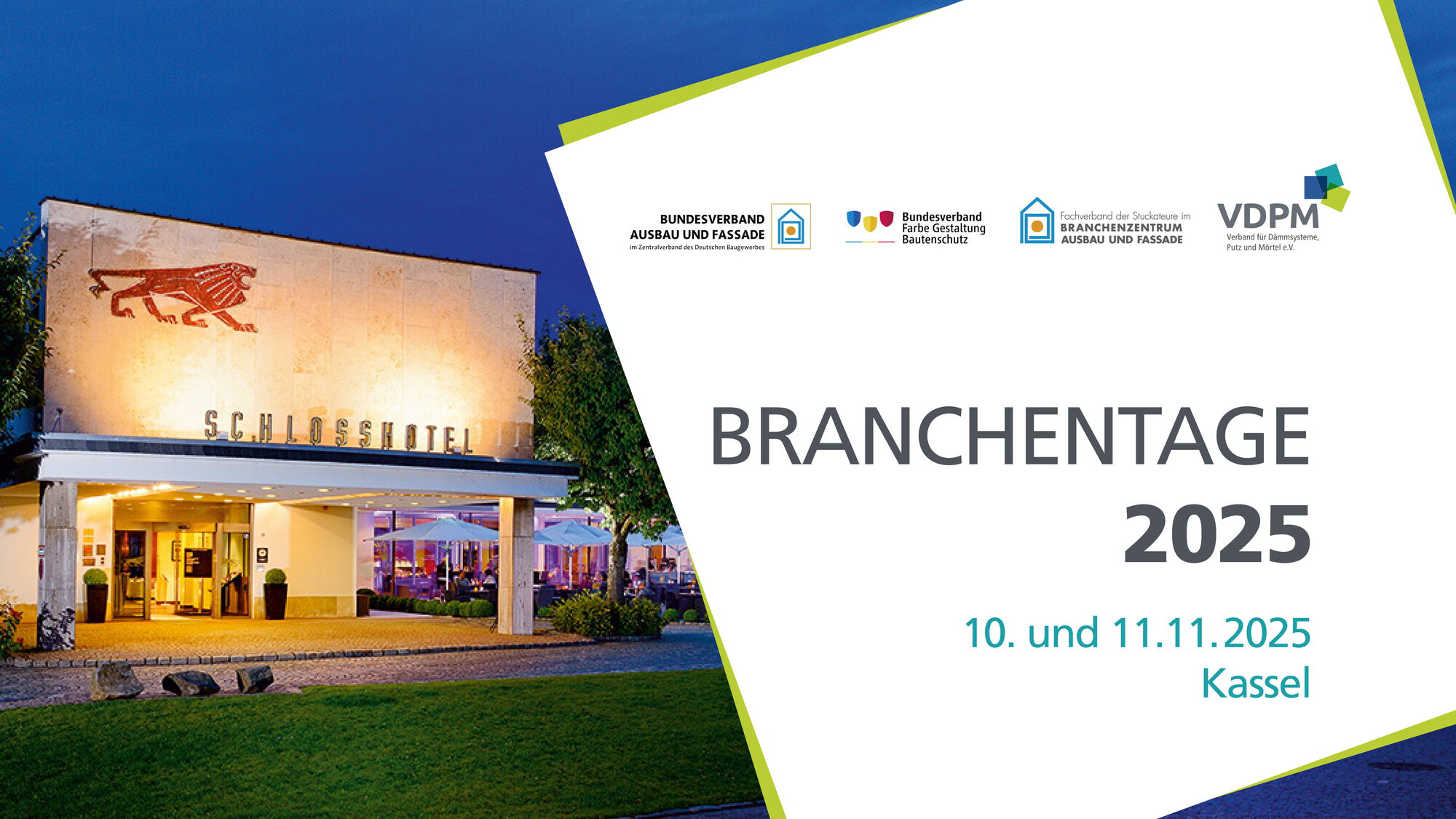 Veranstalter der BRANCHENTAGE im Schlosshotel Bad Wilhelmshöhe sind der Verband für Dämmsysteme, Putz und Mörtel (VDPM), der Bundesverband Ausbau und Fassade im Zentralverband des Deutschen Baugewerbes (BAF), der Fachverband der Stuckateure im Branchenzentrum Ausbau und Fassade (SAF) sowie der Bundesverband Farbe Gestaltung Bautenschutz (BV FGB).